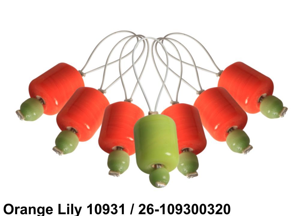 Besondere Maschenmarkierer Orange Lily mit 6 0rangenen Glasperlen und 1 grüne Glasperle zum einfachen Merken von Rundenanfängen, Musterwiederholungen, Zu- und Abnahmen oder anderen Maschen beim Stricken.