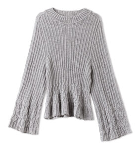 Die Farbe hellgrau ist perfekt für Modell 17 aus Nera No. 2. Dafür benötigst Du ca. 400 g Hellgrau, 1 kurze und lange Rundstricknadel Nr. 3 und 3.5; je 2 Maschenmarkierer in 2 unterschiedlichen Farben; 1 Zopfnadel.